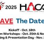 HONOLULU – The dates for the Hawaii Annual Code Challenge 2025 have been set. They will take place as follows: Kickoff on Saturday, October 18th via Zoom Interim Workshops on ...